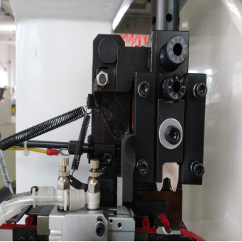 本機(jī)型適用于不同規(guī)格連帶的針管端子和各種規(guī)格的冷壓端子。機(jī)器采用模塊化設(shè)計(jì),切刀裝置、夾線裝置、扭線裝置、壓接裝置均可單獨(dú)快速拆卸,維護(hù)方便快捷。自主研發(fā)的單片機(jī)控制系統(tǒng),具有操作簡單,日常維護(hù)簡便,壓接效率高,質(zhì)量穩(wěn)定的特點(diǎn)。產(chǎn)品的剝皮長度、切入深度、端子壓接位置等參數(shù)均可以在界面上設(shè)置調(diào)整。傳動(dòng)裝置采用步進(jìn)電機(jī)傳動(dòng),精度高、速度快。設(shè)備入線端帶有導(dǎo)向口確保扭過的線材導(dǎo)入端子時(shí)銅絲不易散開,保證加工產(chǎn)品整齊美觀。